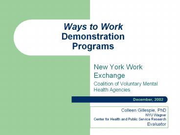 <Notice: Removed> Ways to Work Demonstration Programs PowerPoint PPT Presentation