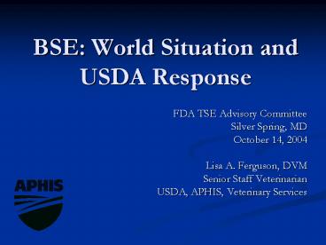 Title: BSE: World Situation and USDA Response