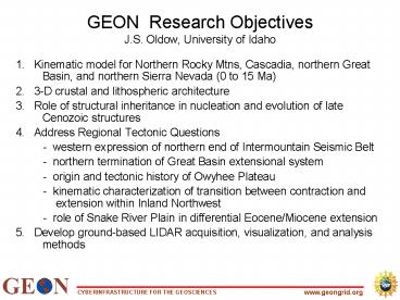GEON Research Objectives J.S. Oldow, University of Idaho PowerPoint PPT Presentation