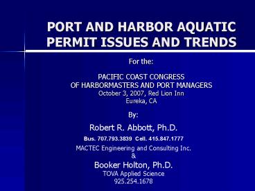 Title: PORT AND HARBOR AQUATIC PERMIT ISSUES AND TRENDS