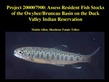 Project 200007900: Assess Resident Fish Stocks PowerPoint PPT Presentation