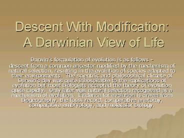 1Descent With Modification A Darwinian View of