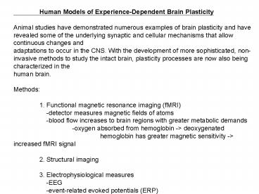 Title: Human Models of ExperienceDependent Brain Plasticity