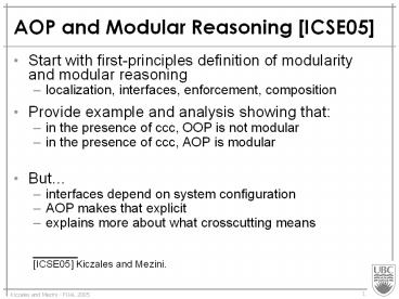<Notice: Removed> AOP and Modular Reasoning [ICSE05] PowerPoint PPT Presentation