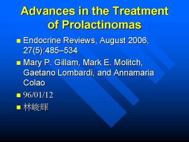 Advances in the Treatment of Prolactinomas PowerPoint PPT Presentation