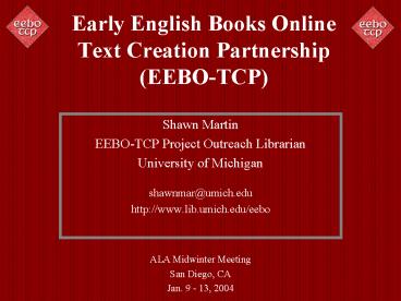 - Shawn Martin EEBO-TCP Project Outreach
