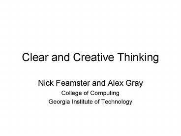 Clear and Creative Thinking PowerPoint PPT Presentation