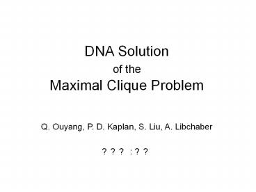 <Notice: Removed> DNA Solution of the Maximal Clique Problem PowerPoint PPT Presentation