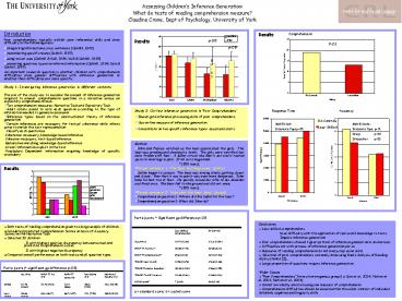 Assessing Childrens Inference Generation: PowerPoint PPT Presentation