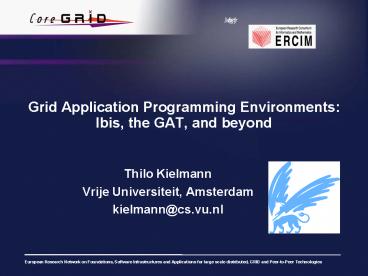 Title: Grid Application Programming Environments: Ibis, the GAT, and beyond