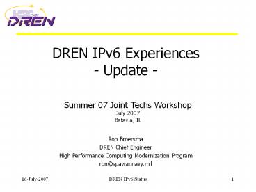<Notice: Removed> DREN IPv6 Experiences - Update - PowerPoint PPT Presentation