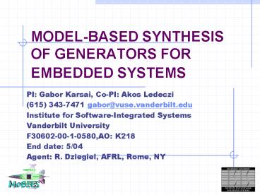 Title: MODEL-BASED SYNTHESIS OF GENERATORS FOR EMBEDDED SYSTEMS