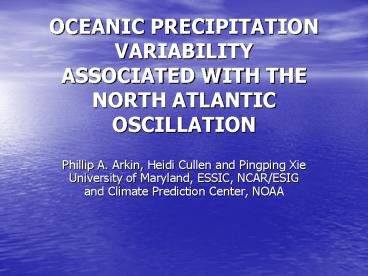 Title: OCEANIC PRECIPITATION VARIABILITY ASSOCIATED WITH THE NORTH ATLANTIC OSCILLATION