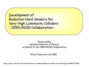currently extensively studied subject. - There are ?100 institutes within the CERN RD50