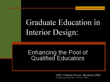 Education in I.D. - 2007 Fellows ForumGraduate Education in I.D.