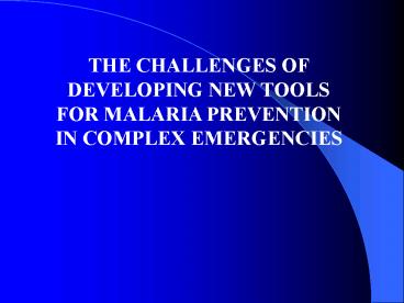 MALARIA PREVENTION IN COMPLEX EMERGENCIES