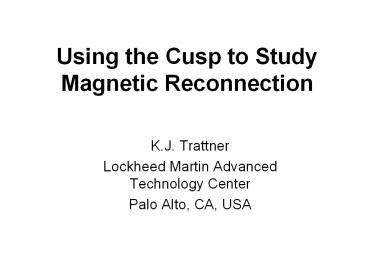 1Using the Cusp to Study Magnetic Reconnection
