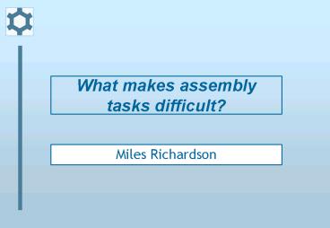 how task variables relate to complexity. - 12 screened participants assembled 16 assemblies