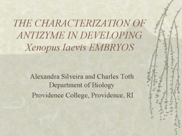 Title: THE CHARACTERIZATION OF ANTIZYME IN DEVELOPING Xenopus laevis EMBRYOS
