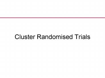 1Cluster Randomised Trials