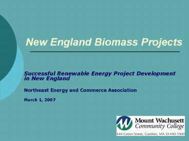 to serve plants at several MA locations. - Research bioenergy harvesting and fuel