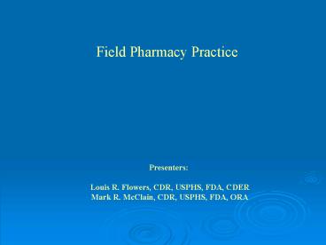 Presenters Louis R. Flowers, CDR, USPHS, FDA,