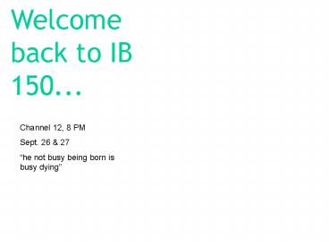 1Welcome back to IB 150...