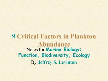 <Notice: Removed> 9 Critical Factors in Plankton Abundance PowerPoint PPT Presentation