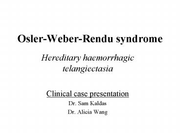 OslerWeberRendu syndrome PowerPoint PPT Presentation