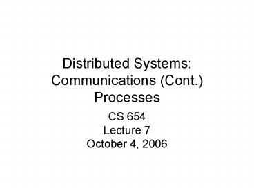 Title: Distributed Systems: Communications Cont' Processes