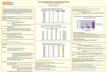 Title: Narrative Language Abilities in Adults with Parkinson disease