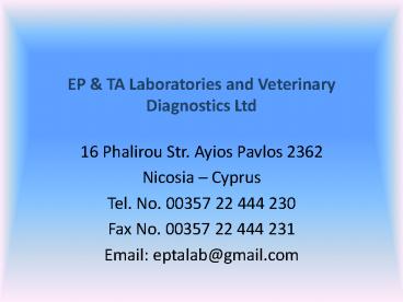 EP TA Laboratories and Veterinary Diagnostics is approved and licensed by