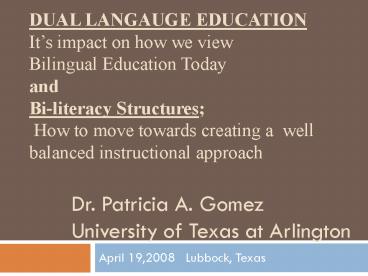 Title: Dr' Patricia A' Gomez University of Texas at Arlington