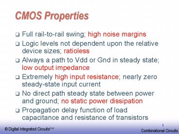 device sizes ratioless - Always a path to Vdd or Gnd in steady state low