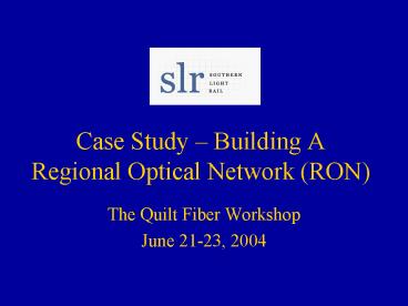 Title: Case Study Building A Regional Optical Network RON