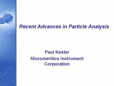 Recent Advances in Particle Analysis PowerPoint PPT Presentation