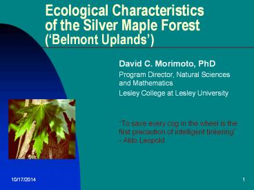 <Notice: Removed> Ecological Characteristics of the Silver Maple Forest ( PowerPoint PPT Presentation