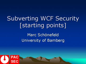 <Notice: Removed> Subverting WCF Security [starting points] PowerPoint PPT Presentation