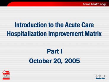 Title: Introduction to the Acute Care Hospitalization Improvement Matrix