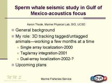 Title: Sperm whale seismic study in Gulf of Mexico-acoustics focus