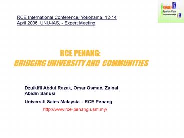 Title: RCE PENANG: BRIDGING UNIVERSITY AND COMMUNITIES