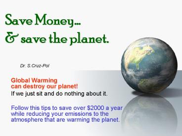 - ave Money, improve your Health, Save the Planet!