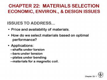 Title: CHAPTER 22: MATERIALS SELECTION ECONOMIC, ENVIRON',