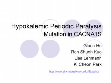 Hypokalemic Periodic Paralysis Mutation in CACNA1S PowerPoint PPT Presentation