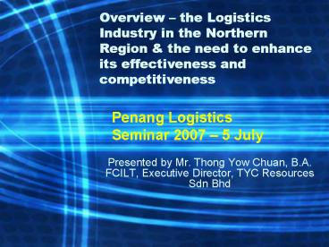 - Presented by Mr. Thong Yow Chuan, B.A. FCILT,