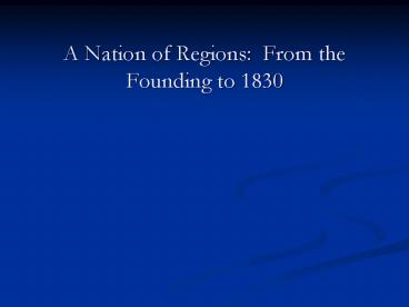A Nation of Regions: From the Founding to 1830 PowerPoint PPT Presentation