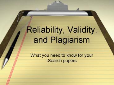 Reliability, Validity, and Plagiarism PowerPoint PPT Presentation