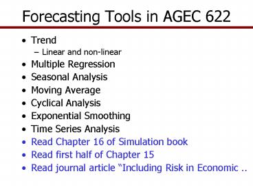 Forecasting Tools in AGEC 622 PowerPoint PPT Presentation