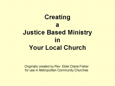 be lived out in other places. Live your passion. - Local ministries are our predominant justice