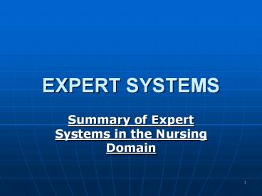 EXPERT%20SYSTEMS PowerPoint PPT Presentation
